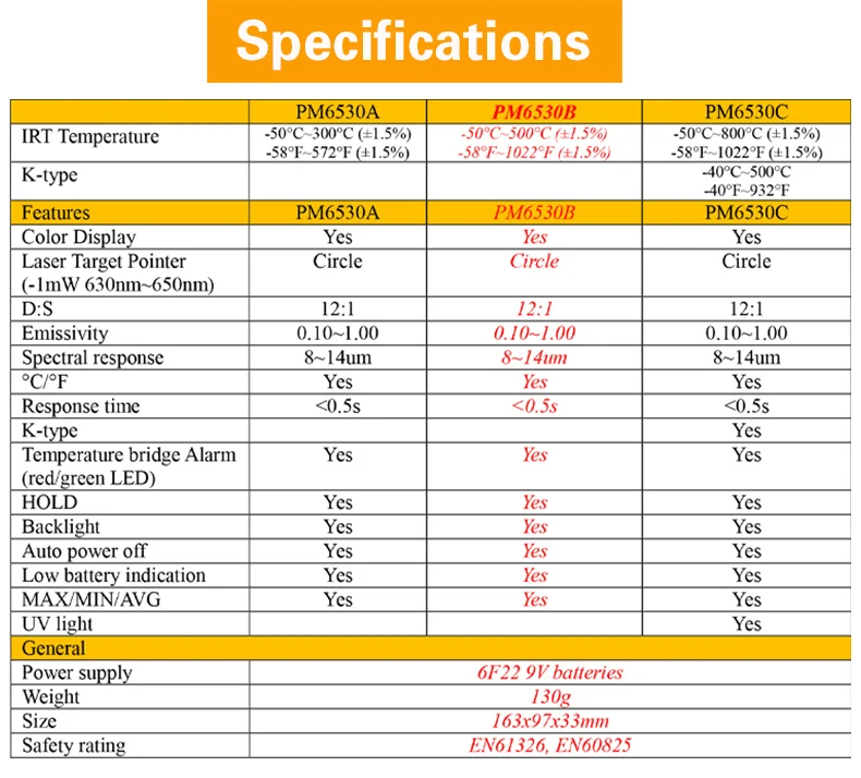PEAKMETER PM6530C LCD ручной лазерный цифровой ИК инфракрасный термометр Температура-50 ~ 800 с K Тип окружающего УФ-света