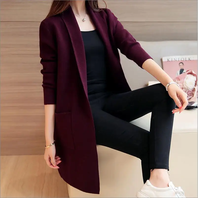 2017 новое поступление женский длинный свитер кардиганы Повседневный Сезон весна-осень, свитеры длинное пальто Плюс Размер кардиганы Femme KC11