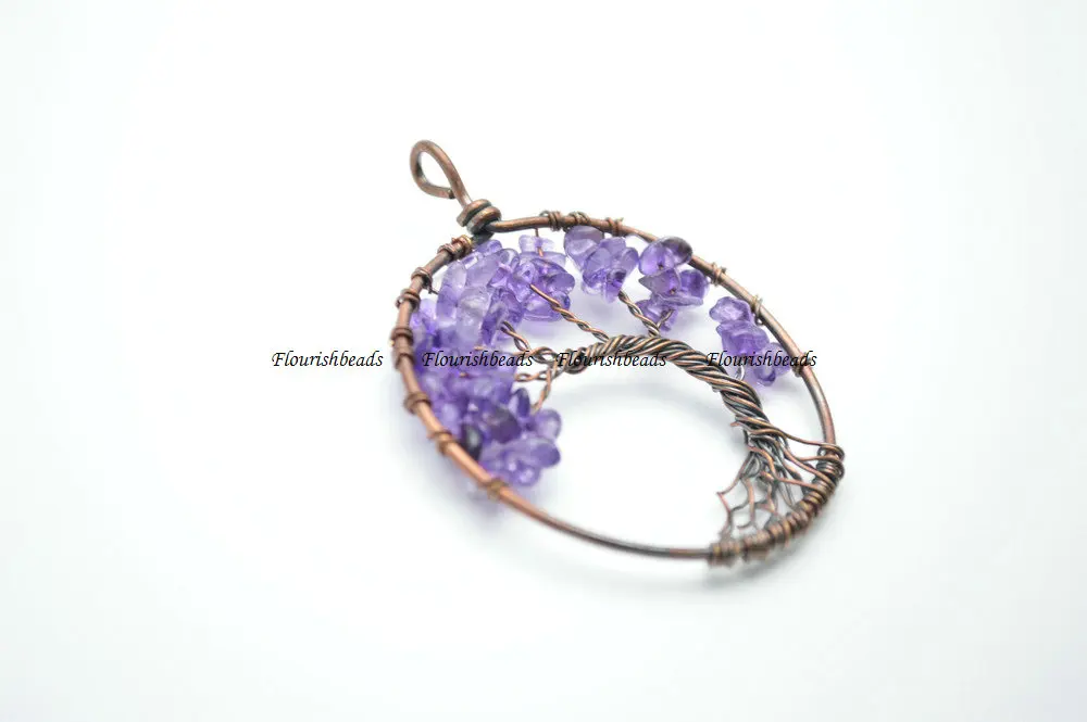 Бусины из натурального камня, круглые металлические подвески в виде дерева жизни