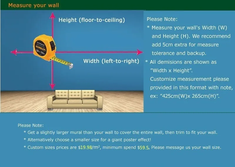 Мы дадим вам рассчитать правильное количество заказа и цену Часто задаваемые вопросы: покупатели заказали оставить. Информация о размере отсутствует. Что делать? Мы будем ждать покупателей 24 часа. Мы отправим Соответствующий По умолчанию 12 фиксированных размеров. Часто задаваемые вопросы: Как заказать другие размеры? Закажите другие размеры: 1: Выберите правильное количество = квадратный метр (ширина x высота) 2: купите сейчас. 3: Заполните детали. В номер заказа внутри укажите свой размер Информация 4: Отправьте свой заказ. Платежи. На OK Ширина x высота = Квадратные метры (квадратные футы) 1 квадратный метр = 10,76 квадратных футов Совет: если ступня (дюймы) даст мне информацию, я дам вам рассчитать правильное количество заказа Например, : Вы должны к стене: Ширина = 2,8 m Высота = 1,7 м .. 2,8 м x 1,7 м = 4.76m2 округление. Вам нужно заказать Количество: 5 Часто задаваемые вопросы: какие обои? Это фото обои. Фотообои. Фотообои. Не рулоны обоев. Не плакат. Не настенные наклейки. Часто задаваемые вопросы: Как узнать размер фото обоев? Это пользовательские обои. Не 10 м L и 0,53 м W рулоны обоев Часто задаваемые вопросы: Как вставить эти обои? Вставьте его. С такими же рулонами обоев. Требуется клейкая паста Часто задаваемые вопросы: Как заказать размер основной картины? Вам нужен размер стены. Ширина и высота. Пожалуйста, сообщите нам информацию Часто задаваемые вопросы: есть ли общий размер? Да. Часто задаваемые вопросы:На реальных фотографиях и фотографиях показано небольшое отклонение цвета Напоминание; Мы не несем ответственности за любые таможенные пошлиныОписание товара
