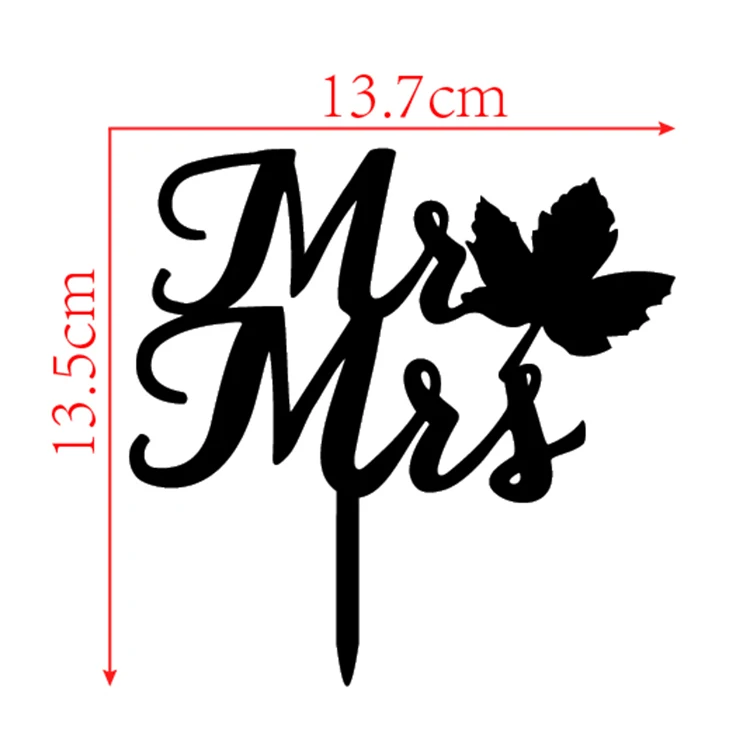Mr Mrs акриловые флажки для торта сердце любовь кленовый лист клевер черный белый золотой серебряный торт Топпер для свадебной вечеринки украшение для торта