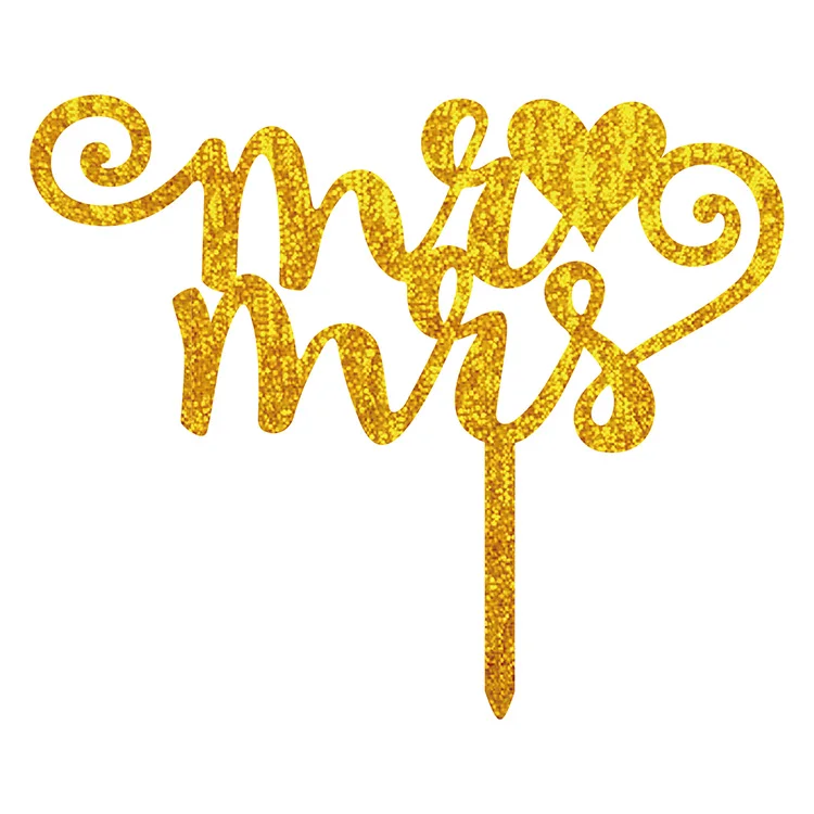 Бесплатная доставка Золотой Серебряный Акриловый свадебный торт флаг Топпер Mr & Mrs Свадебные юбилейные вечерние флажки для торта горячая распродажа USD 5,29/Шт.