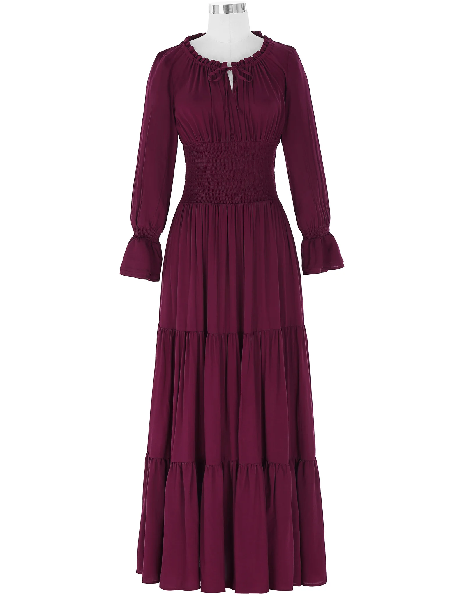 1) длинный рукав 2) Завязывающийся на завязках воротник с оборками 3) очень мягкая и удобная хлопковая ткань 4) Талия хорошо эластичная 5) без молнии, без подкладки |