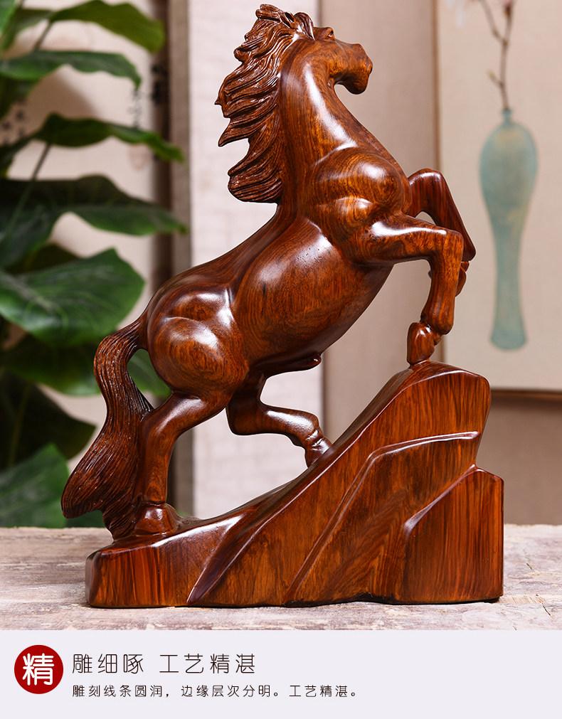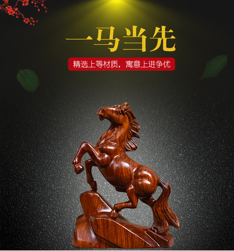 Резная лошадь по дереву для китайских Желтых Цветов зодиака, груша, мебель из цельного дерева и удачные офисные изделия из розового дерева