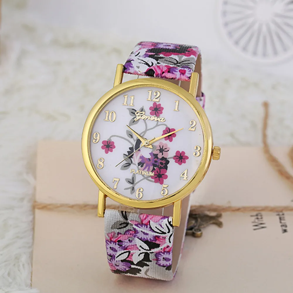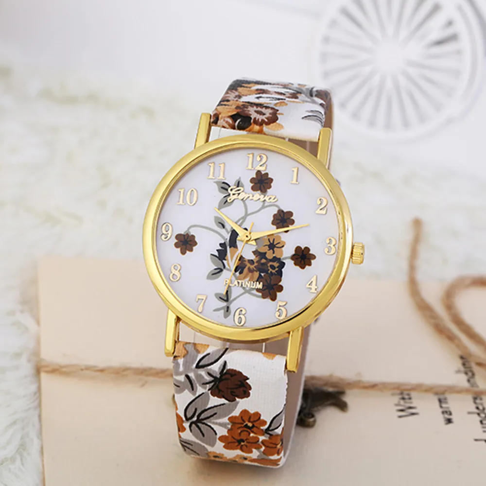 Новинка 2017, модные женские кварцевые аналоговые наручные часы Geneva с кожаным ремешком, Прямая поставка