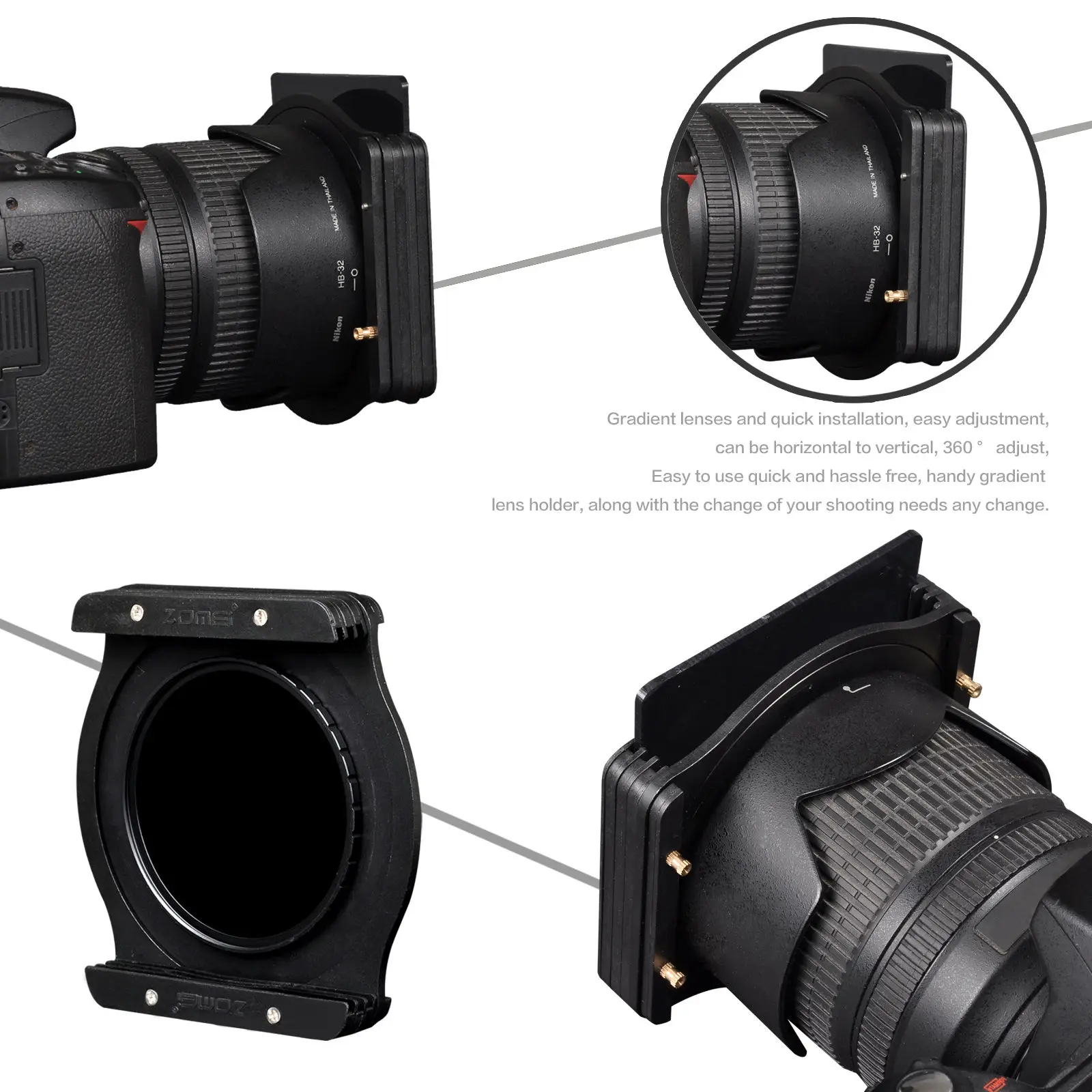 Он может комбинировать Круглый фильтр (67 мм, 72 мм, 77 мм, 82 мм, 86 мм) и квадратный фильтр серии 100 мм (100 мм * 100 мм, 100 мм * 145/150 мм)