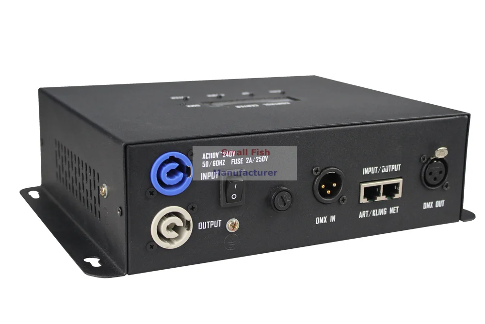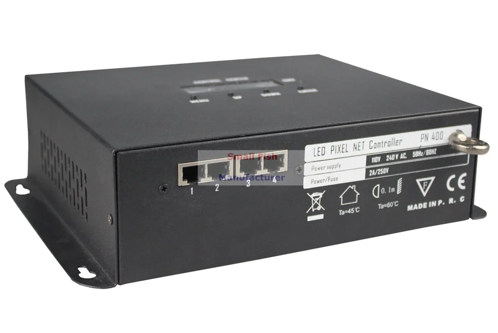 Технические параметры Art-Net каналы (на выходе): 512 ch Разъем данных: Ethernet (RJ45) выход устройства (RJ 45): 4 Максимальная длина кабеля между последними PN-700 продукта и PN-400: 30 м Максимальная длина кабеля между PN-700 изделием и PN-700: 3 м Четыре разъема выход: PN-700-30: 80 шт. P-700-50: 40 шт. P-700-100: 20 шт. IP Рейтинг: IP20 Предпрограммы: 30 DMX каналы: 8CH Входное напряжение: AC100-240V, 50-60 Гц (автоматическое определение) Мощность: 200 Вт Вес: 2,8 кг Размеры: 10,6x7,7x2,9 дюйма (270x195x74 мм) Материал корпуса: сталь Утверждения: CE Контроль (требуется): kling-Net и Art-Net cpntrol