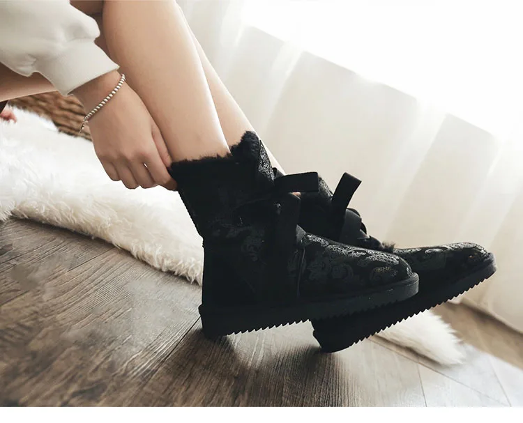 TIMETANG женские кожаные зимние ботинки Женские ботильоны на платформе с плюшем