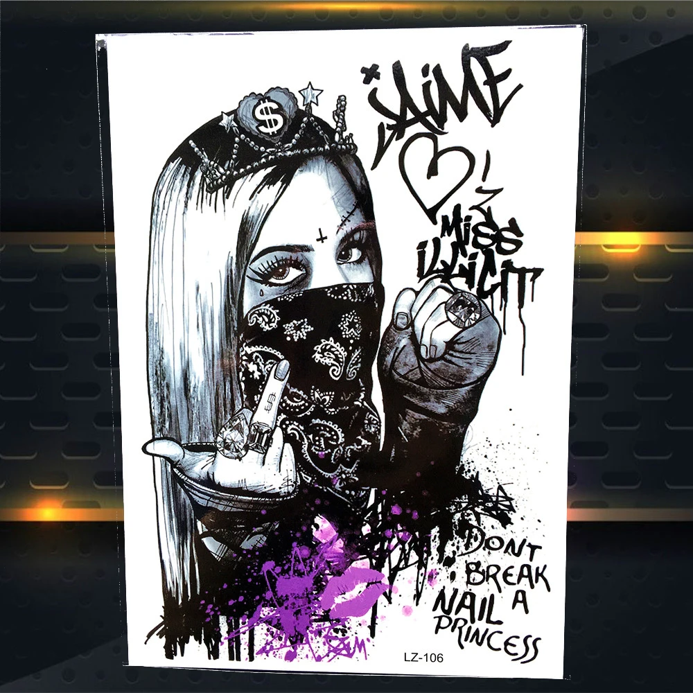 25 стильных панк-наклеек для женщин, временная татуировка-бандита, водонепроницаемые поддельные татуировки для девочек, черная хна-тату, мужской боди-арт