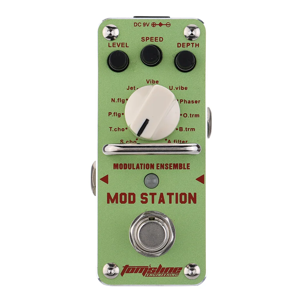 Переключатель режима: Переключение между 11 модуляционными эффектами синусоидального хора, хора трианхеля, положительного воспламенения, отрицательного гнева, струйного воспламенения, вибатио, уни-вибе, винтажный фазер, опто тремоло, bias tremolo и автоматический фильтр.