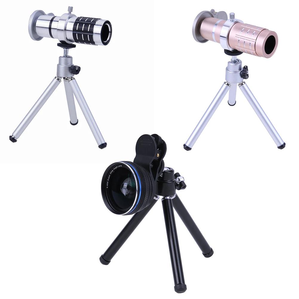 1 X широкоугольный макрообъектив 1 X Универсальный зажим 4 X крышки объектива Штатив-1 шт. 1 X чехол 1 х Салфетка для очистки линз