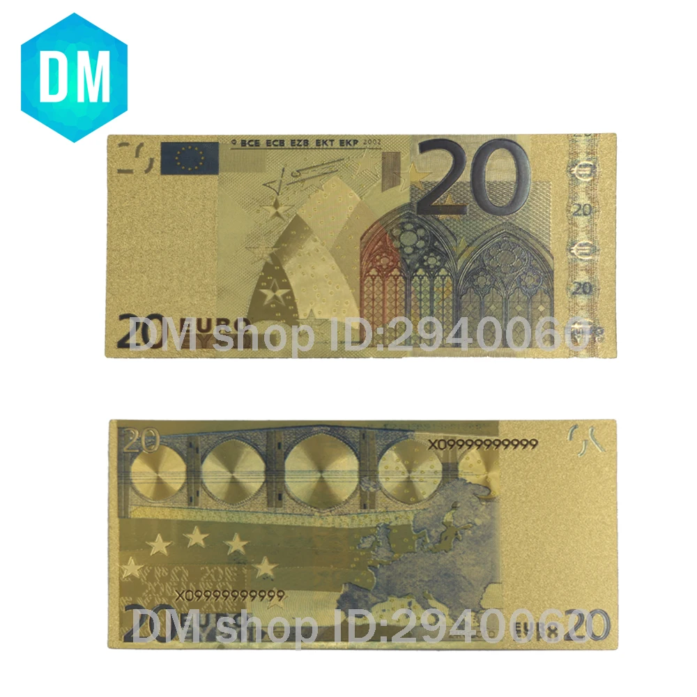 Название:10 шт./лот 24 k позолоченные 20 евро банкноты в цветах, золотые банкноты бумажные деньги свадебный подарок, возврат
