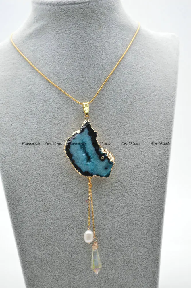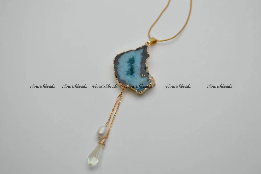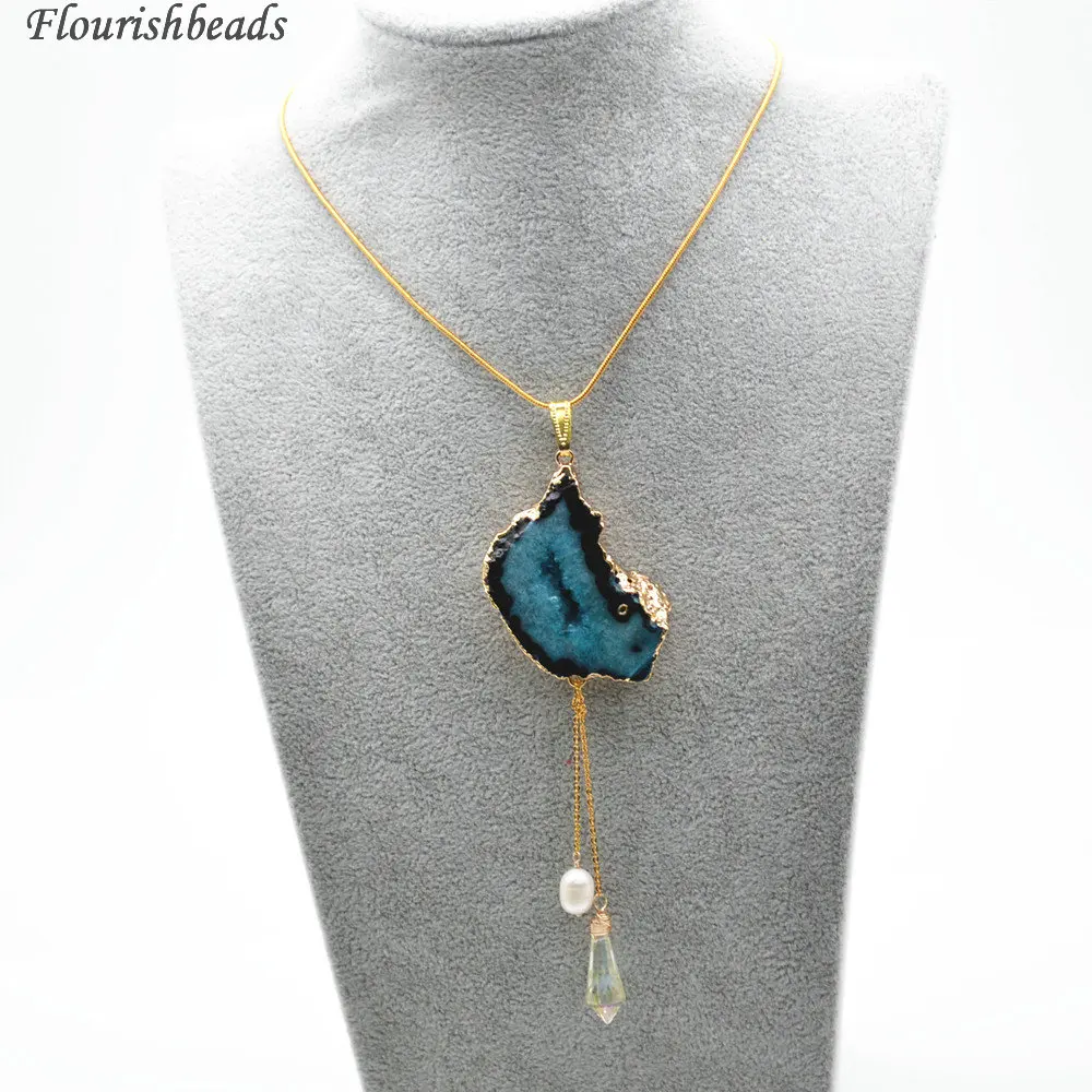 Натуральный кварцевый Агат, подвеска с подвеской, ожерелье из цепочек