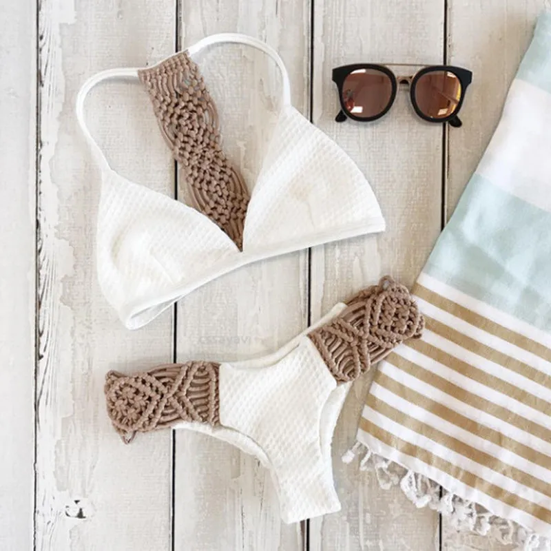 2017 бикини, белый вязаный сексуальный комплект бикини для женщин, открытая низкая талия, Maillot de Bain Femme, на бретелях, бикини для дам, купальный костюм