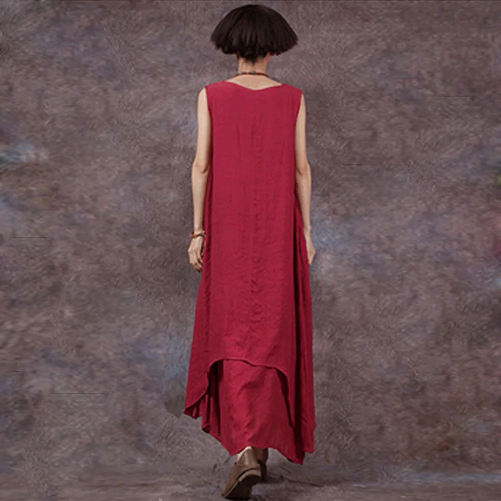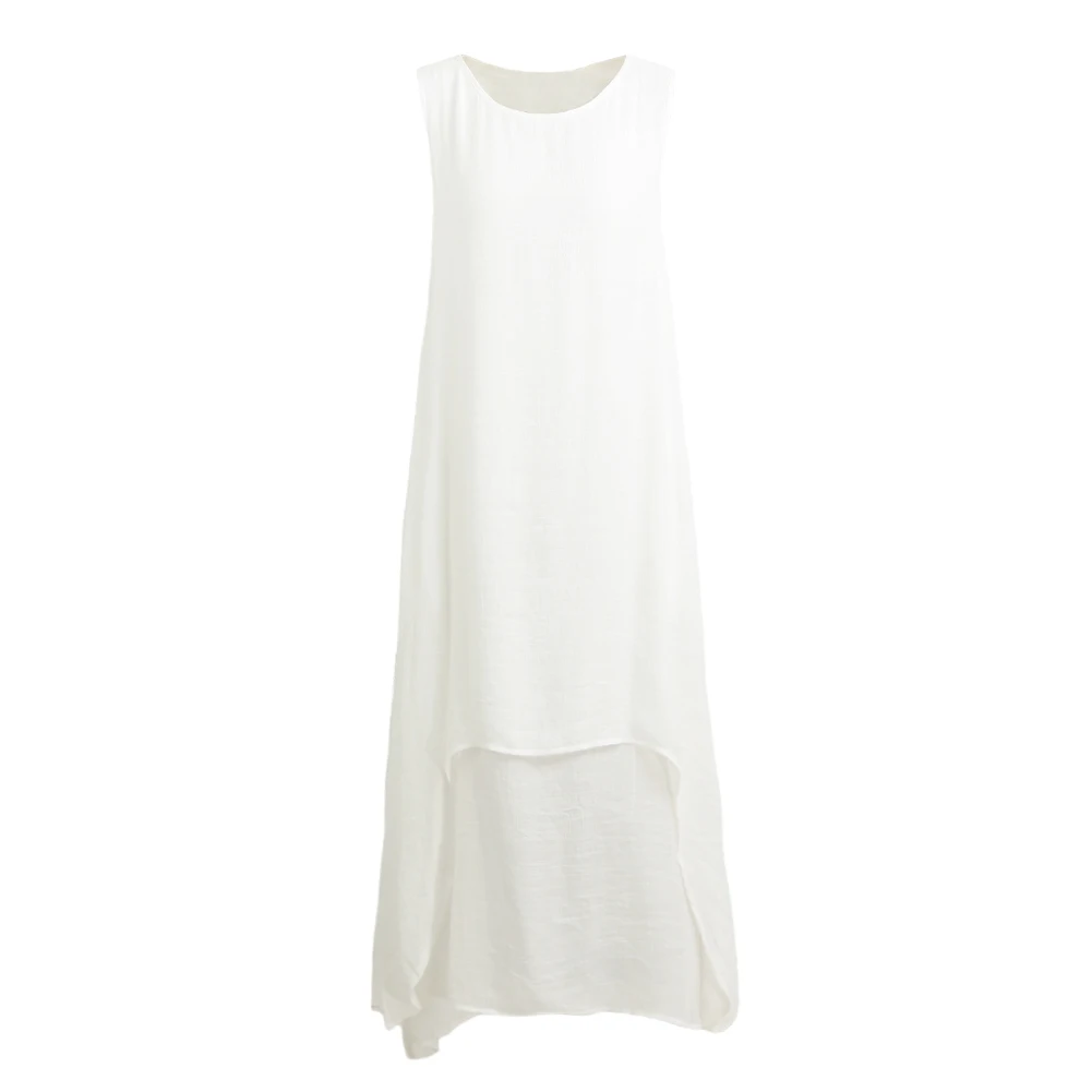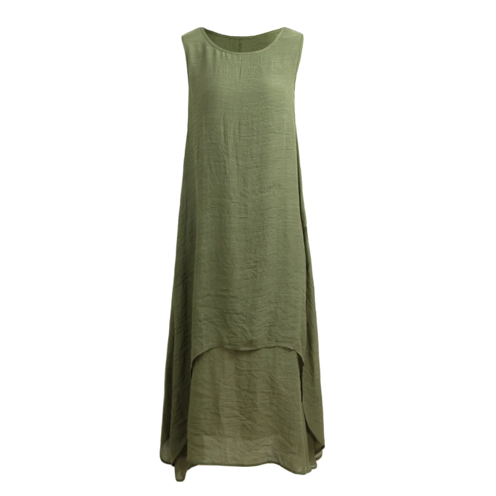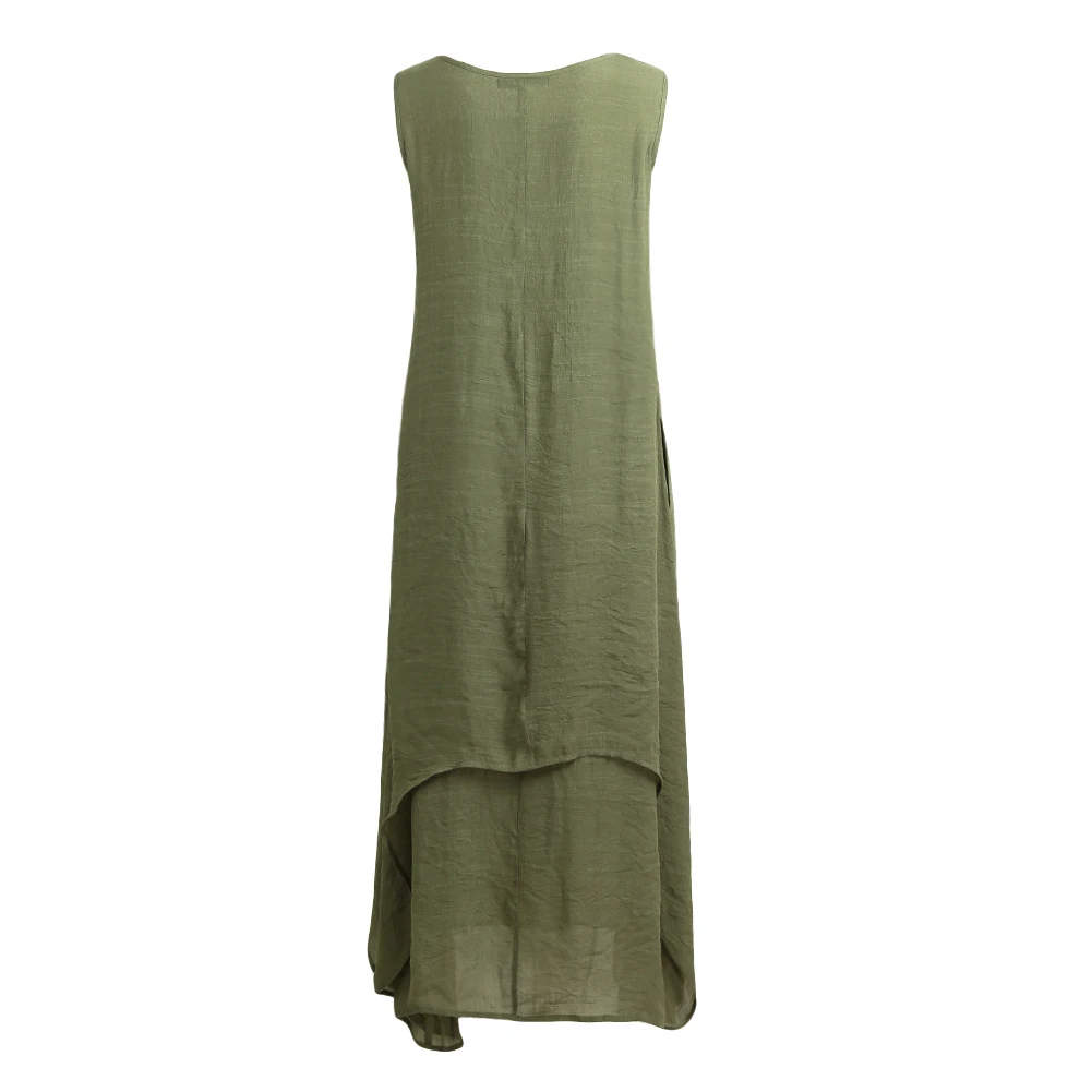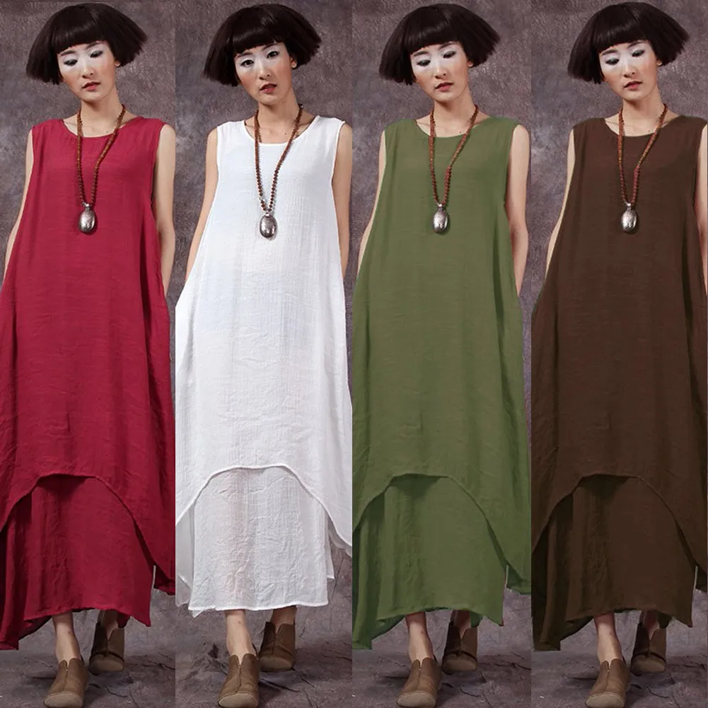 Повседневное Ретро женское свободное платье без рукавов с О-образным вырезом и карманами Бохо длинное платье макси Vestidos размера плюс пляжное платье vestidos 5XL