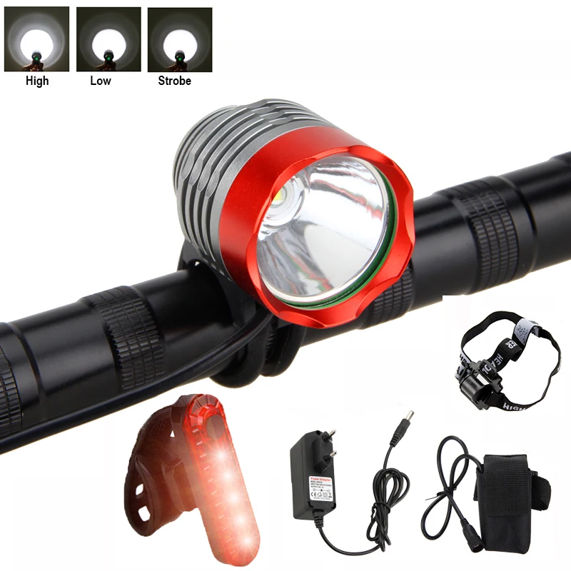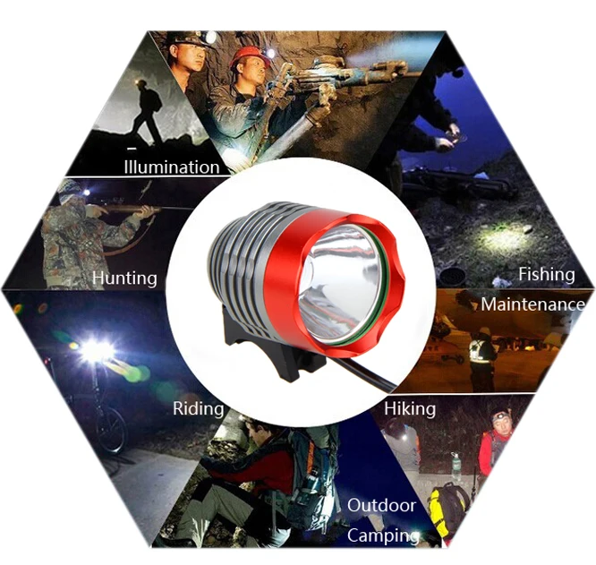 1 x XM-L U2 светодиодный светильник (может использоваться как налобный фонарь или велосипедный светильник) 1 x регулируемая повязка на голову 2 x Резиновое кольцо для установки 1 х 8,4 в 6400 мАч аккумулятор 1 зарядное устройство переменного тока (100-240 В) подходит для вашей страны 1 x задний фонарь (опционально)