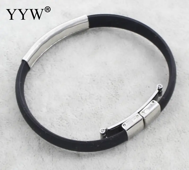 Лидер продаж 2017, силиконовые браслеты из нержавеющей стали, женские и мужские повседневные ювелирные изделия, аксессуары, застежка, Черный резиновый браслет