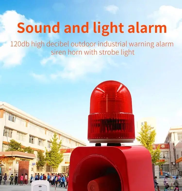 Этот вид звукового и визуального устройства сигнализации дает предупреждающие сигналы через звук и светильник, широко применяется в больших подъемных машинах, инженерных транспортных средств, банк, государственные учреждения, здания, виллы, лесной парк, пограничная система обороны и Служба безопасности компании и других районов.