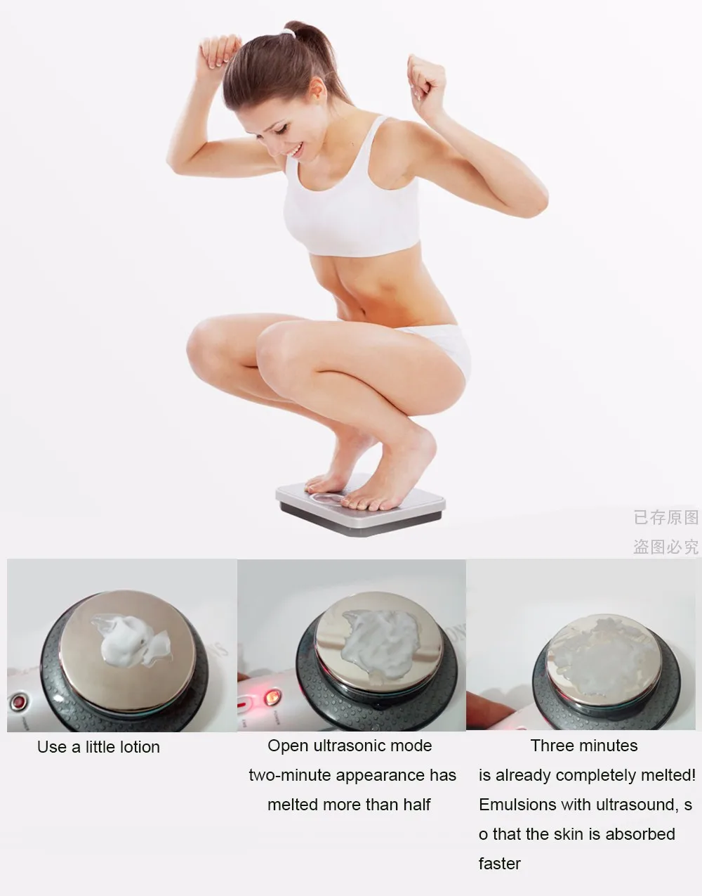 4 * Нанесите средство для ухода за кожей на кожу, где необходим массаж, чтобы кожа была полностью увлажнена. {Примечание: лучше всего использовать гель-как средства для ухода для передачи ультразвука.