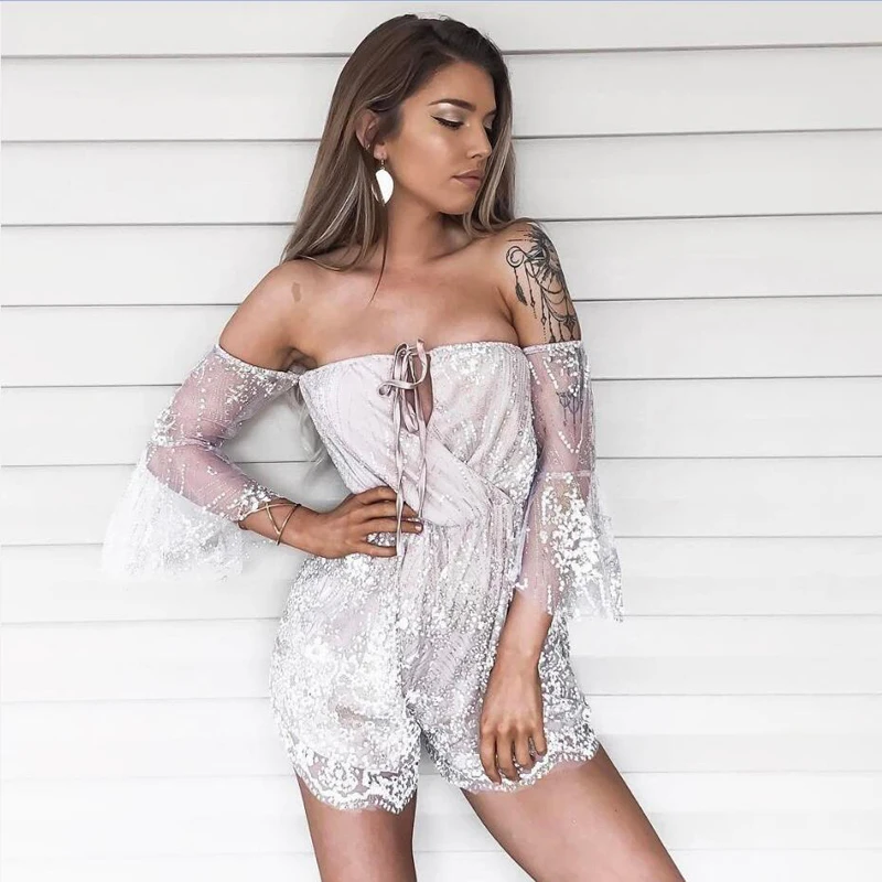 Женский комбинезон с блестками Boho кружевной праздничный мини костюм треугольным