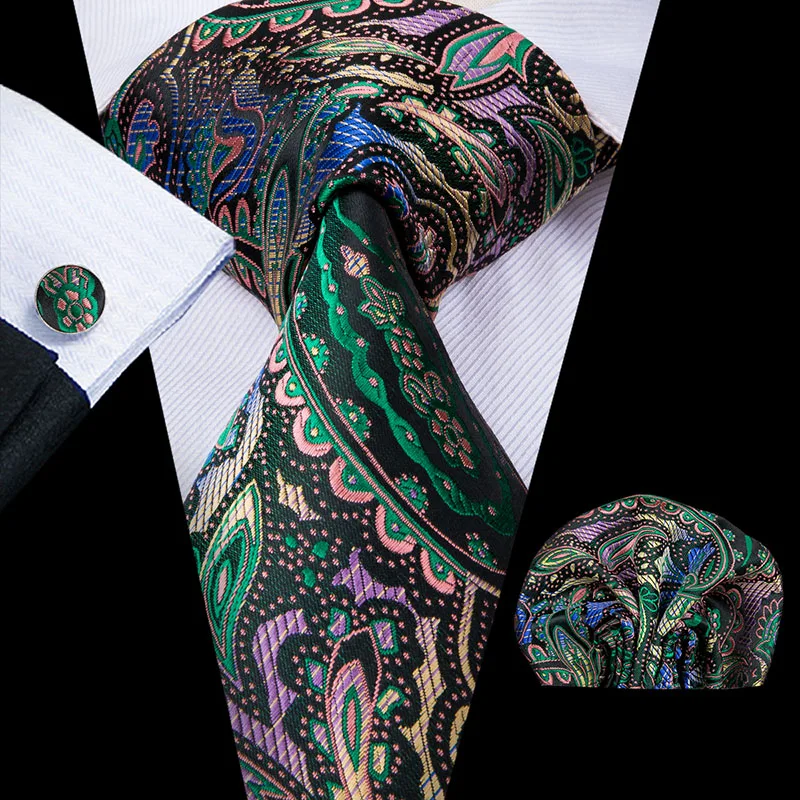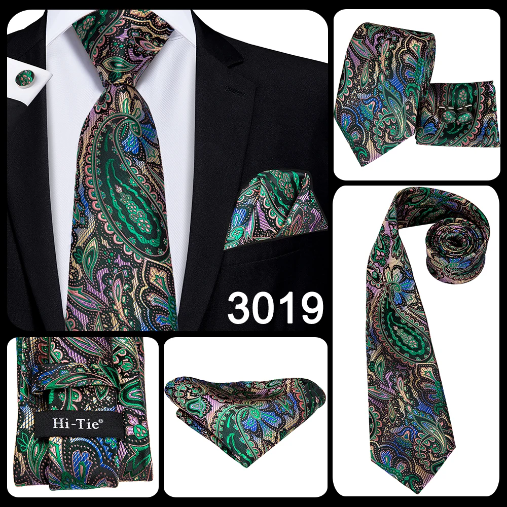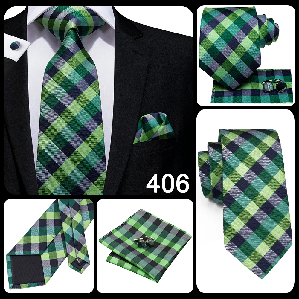 C-1608, Hi-Tie, осенний дизайн, зеленый галстук, Hanky, запонки, набор, новый, плед, шейный галстук, набор, Gravatas, модные корбаты, распродажа