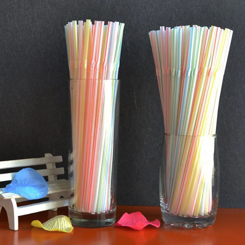 [Продукт] 50 шт красочные одноразовые гибкие пластиковые полосатые соломинки