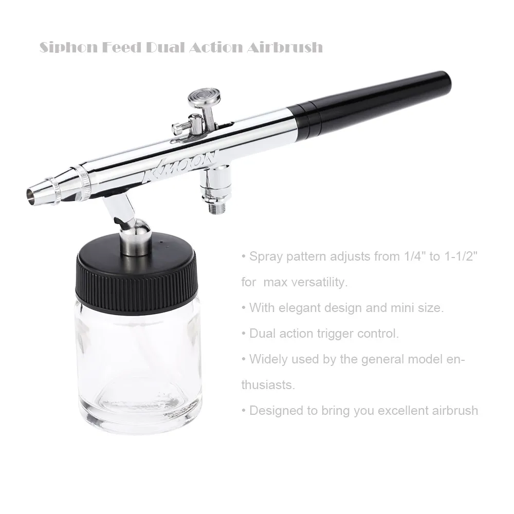 Включает в себя Аэрограф с тонкой головкой, шланг из полиуретана 5 футов, с крышкой прикрепить банку 22cc, регулятор и адаптер (1/4 "воздушный шланг от компрессора до меньшего шланга аэрограф.)