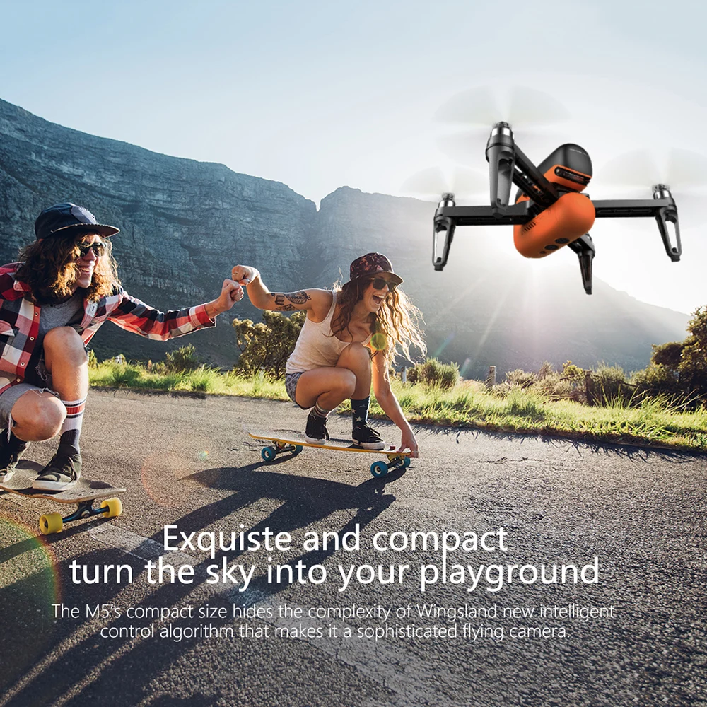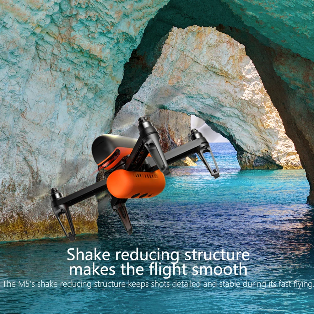 Здесь представлен Дрон M5, Инновационный профессиональный аэрофотосъемки. С GPS, оптическим потоком и ультразвуковым датчиком обеспечивает сверхстабильный полет, бесщеточный двигатель и аккумулятор большой емкости в течение 17 минут полета.