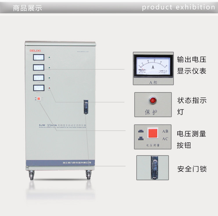 DJW-WB, SJW-WB серия, трехфазный микро-компьютер Бесконтактный стабилизатор напряжения компенсации, принятый монолитный процессор для контроля тисистора, чтобы компенсировать напряжение и достичь цели регулирования напряжения, он имеет преимущество высокой эффективности, энергосбережения, трехфазный сбалансированный автоматически и так далее.