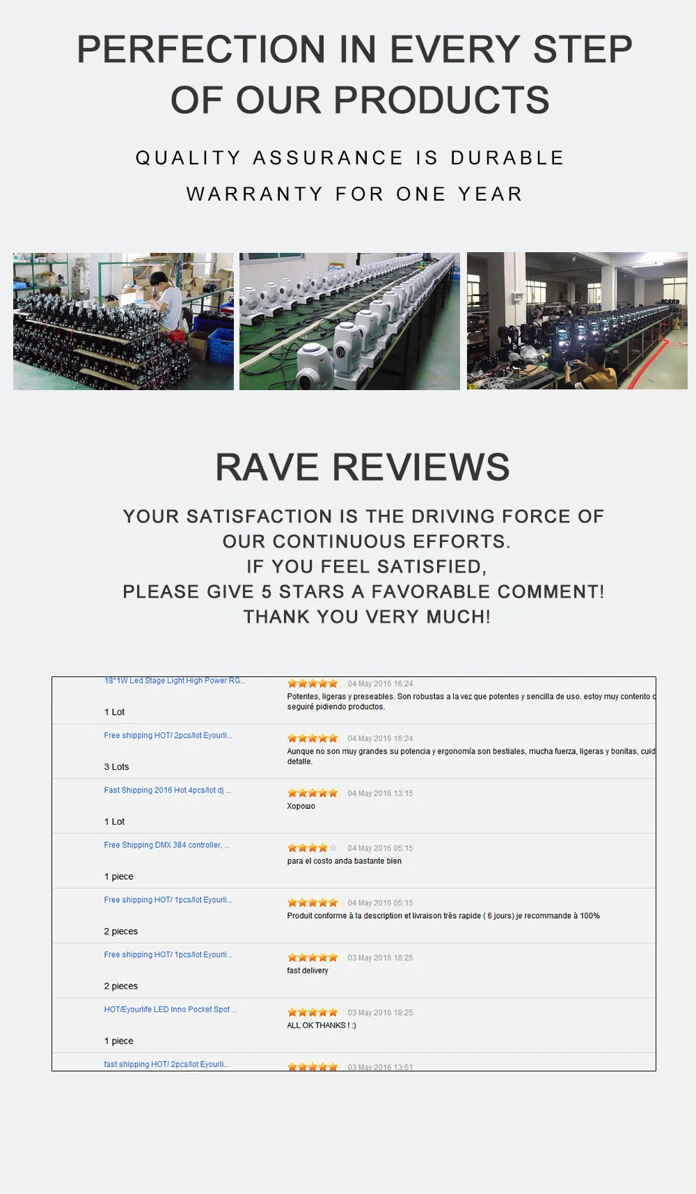 Магазина Hong Yi Stage Light работает с 13.07.2014. его рейтинг составлет 94.29 баллов из 100. В избранное добавили 23794 покупателя. Средний рейтинг торваров продавца 4.8 в продаже представленно 256 наименований товаров, успешно доставлено 2187 заказов. 753 покупателей оставили отзывы о продавце.