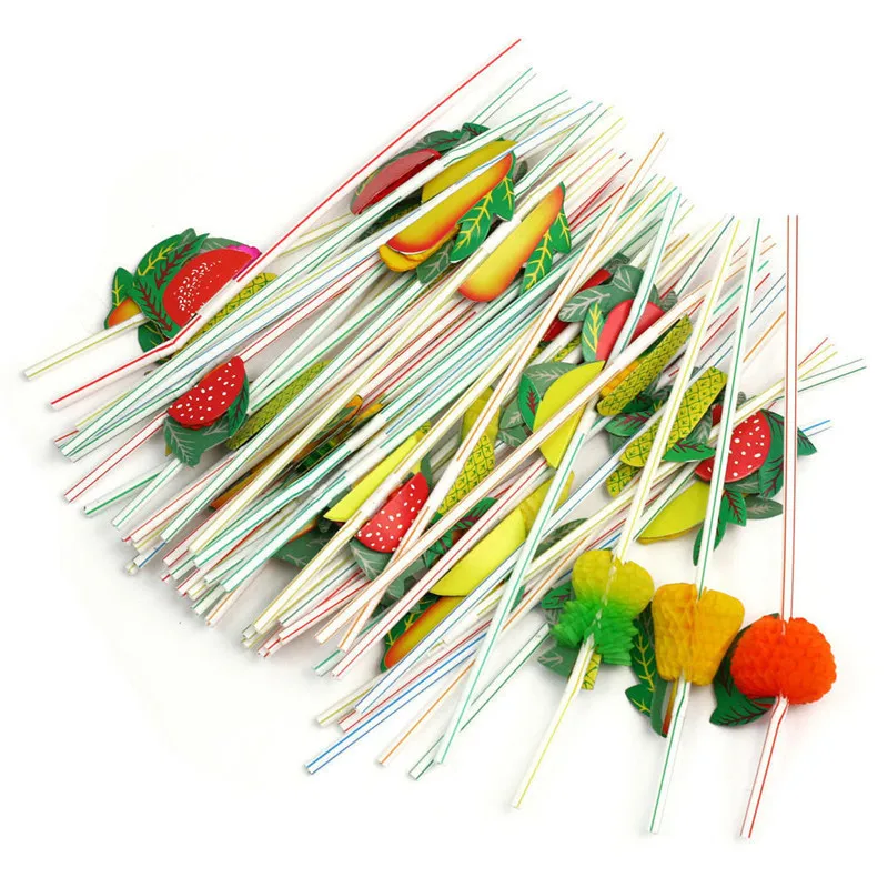 Красочные пластиковые бар питьевой соломинки фрукты моделирование 100 шт питьевой трубки дети мягкие Аксессуары цвет микс 6ZSH913-100