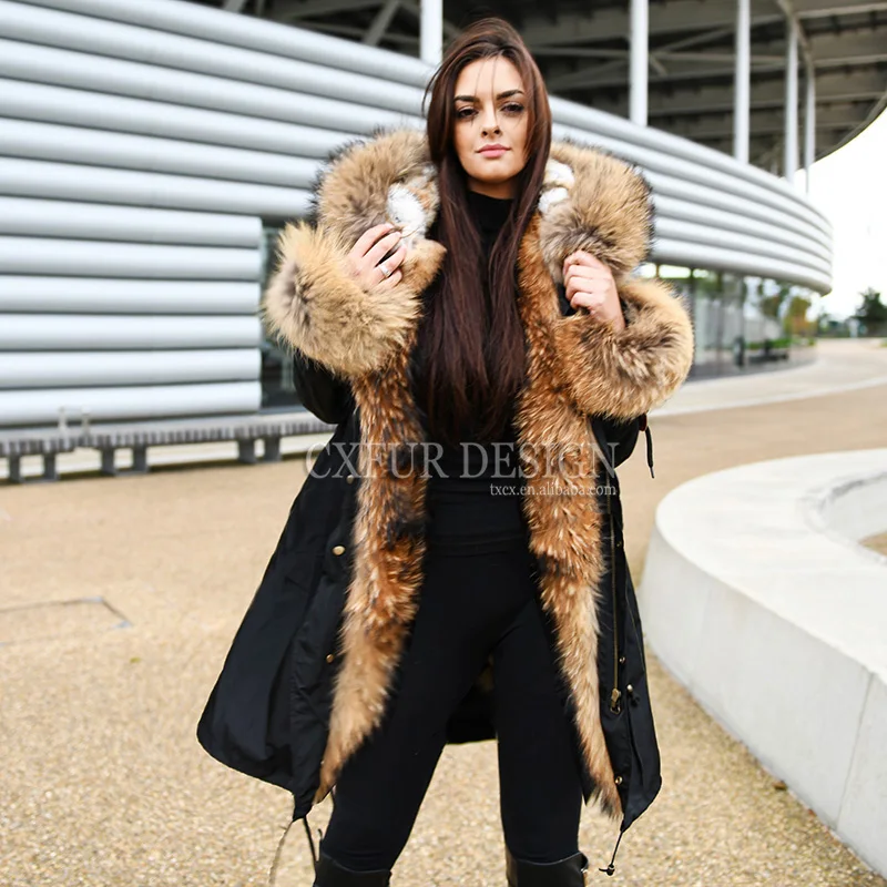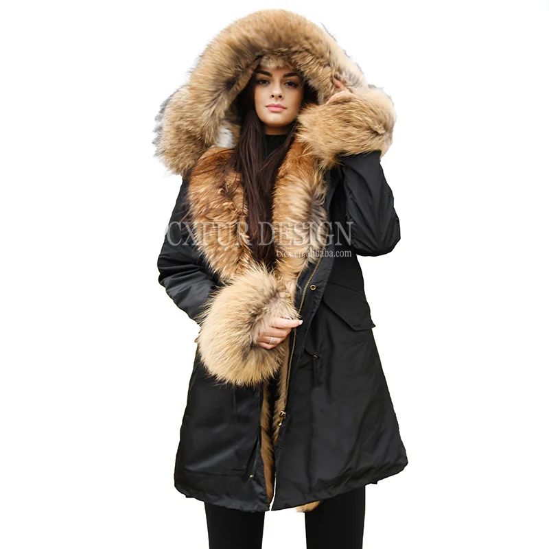 Теплое Женское пальто, пальто, парка с воротником из меха енота, зимние парки с подкладкой из натурального кроличьего меха