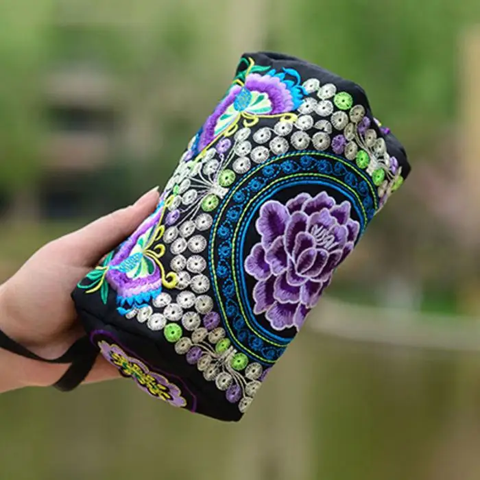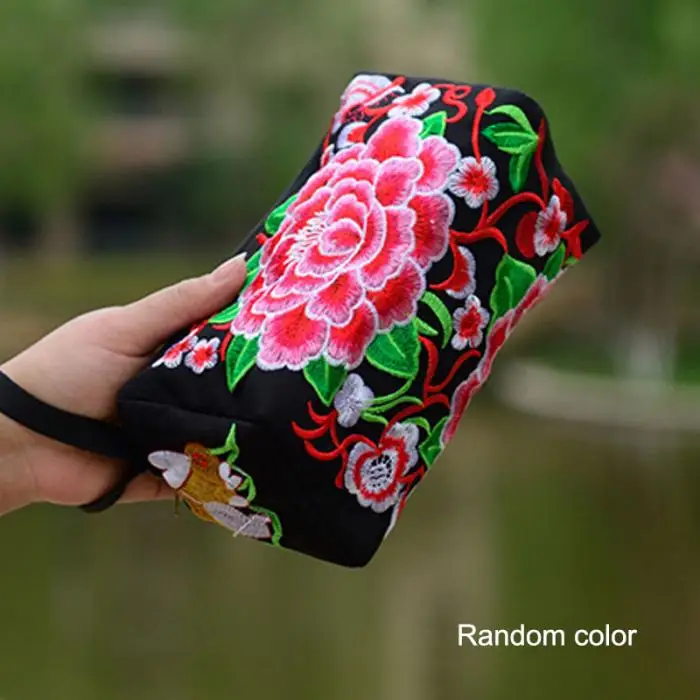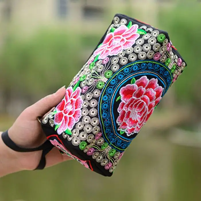 Женский этнический кошелек с вышивкой в виде цветов пионов, Женский кошелек, Национальный Длинный кошелек, сумочка, кошелек, случайный цвет, WML99