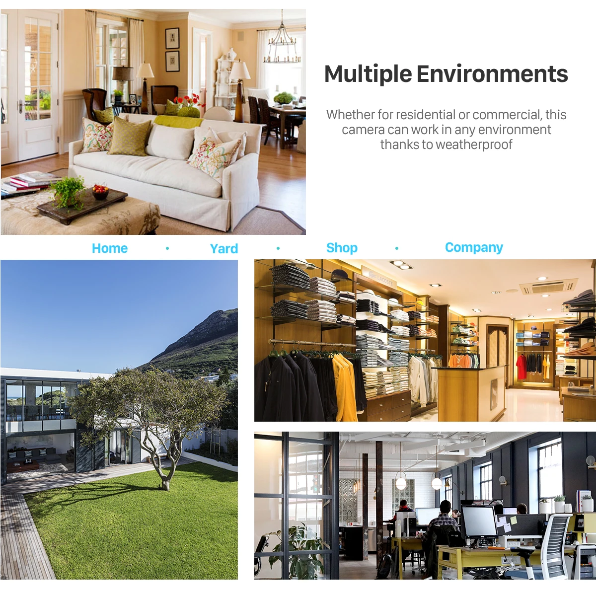 * Просмотр P2P Поддержка удаленного просмотра на мобильных устройствах. Для iPhone/Android поддерживается. * Аудиозапись Встроенный микрофон, он может записывать звук вокруг камеры, большинство других камер не поддерживают аудиозапись. * Мобильное видеонаблюдение Поддержка Мобильный телефон iOS, система Android, удаленный мониторинг мобильных телефонов, вы можете просматривать и контролировать в любое время. * IP66 водонепроницаемый IP66 водонепроницаемый. Профессиональный водонепроницаемый дизайн, наружный водонепроницаемый, хорошая герметизация, не нужно беспокоиться о дожде. * Инфракрасное ночное видение Самое дальнее ИК-расстояние до 20 м. * Режим AP Встроенный Wifi: Подключите камеру непосредственно в пределах 10 м, когда нет wifi.AP и WiFi 2 режима. * Запись: С картой micro sd solt (карта micro sd max 64 ГБ, sd-карта на выбор) * ONVIF Поддержка ONVIF