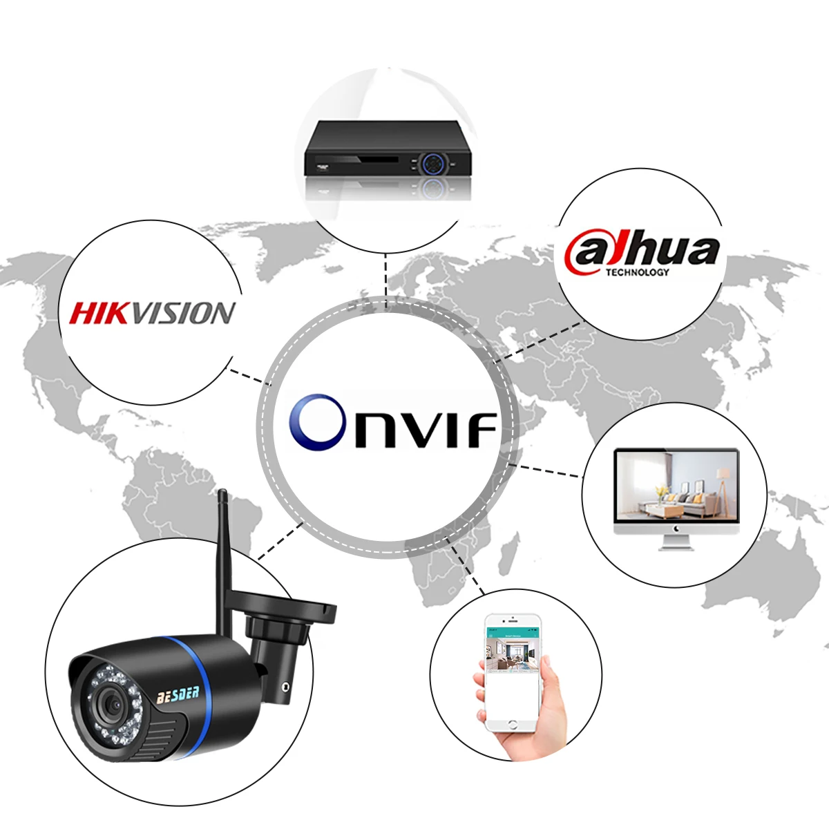 Технология NVIF гарантирует, что камера может работать со многими сторонними вечерние NVRs, которые поддерживают ONVIF