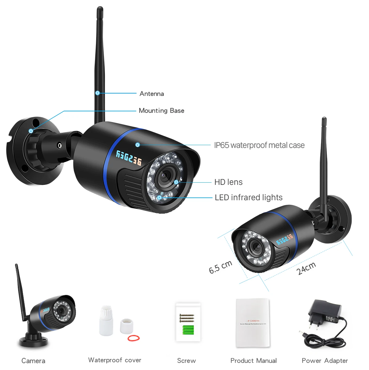 1 * Камера 1 * Руководство пользователя 1 * Адаптер питания DC12V 1A («720P без адаптера» без адаптера питания) 1 * набор винтов 1 * Водонепроницаемый Чехол