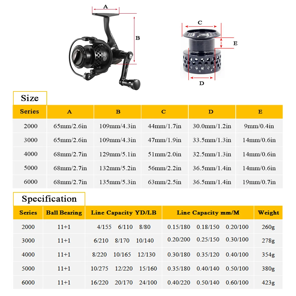 | Серия | Шариковый подшипник | Мощность линии YD/LB | Длина лески мм/м | Вес |