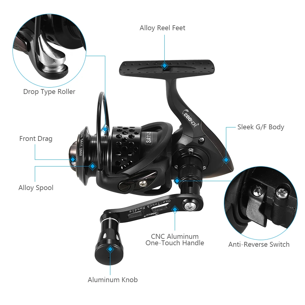 Эта спиннинговая Рыболовная катушка обеспечивает прочность, необходимую для того, чтобы выдерживать суровые условия соленой воды.