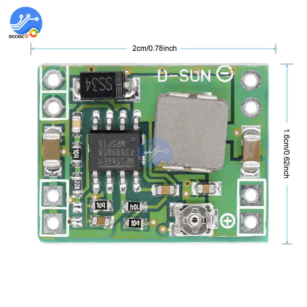 Применение: DIY mobile power, monitor power supply, power buggies, camera power supply, car power, Communication equipment supply, различные правильные размеры и вес для сложных приложений (например, авиационные модели и т. д.). Вход напряжение: 4,5-28V Выходное напряжение: 0,8-20V (регулируемый) Выходной ток: Номинальный ток 3A (макс.). Пожалуйста, не более 3A Частота переключения: 1 МГц Выходная пульсация: менее 30 мВ Эффективность: 96% (макс.) Рабочая температура: Промышленный класс (от-40 C до + 85 C) Свойства модуля: неизолированный понижающий модуль (бак) Размер: 22*17*4 мм Посылка включает в себя: 1x понижающая плата