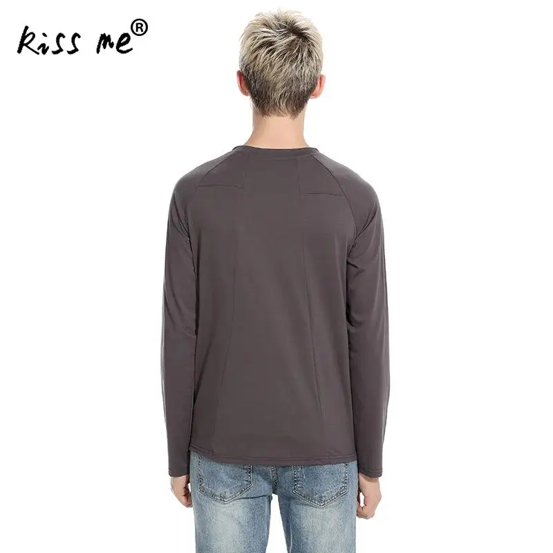 2017 New fashion casual high quality cotton t-shirt solid long sleeved t shirt o neck T-shirt print t shirt men