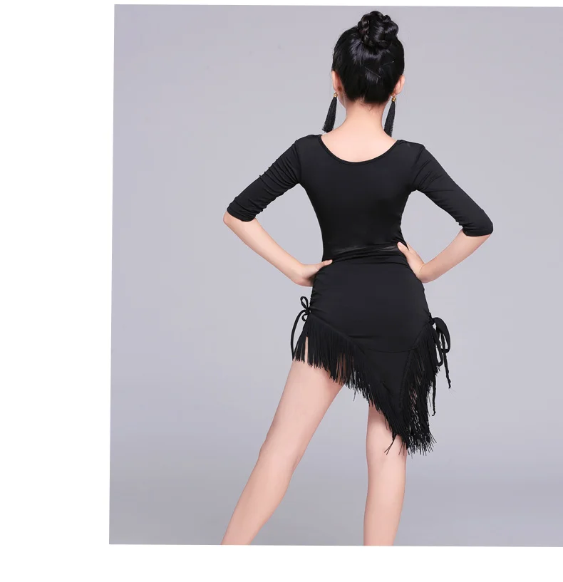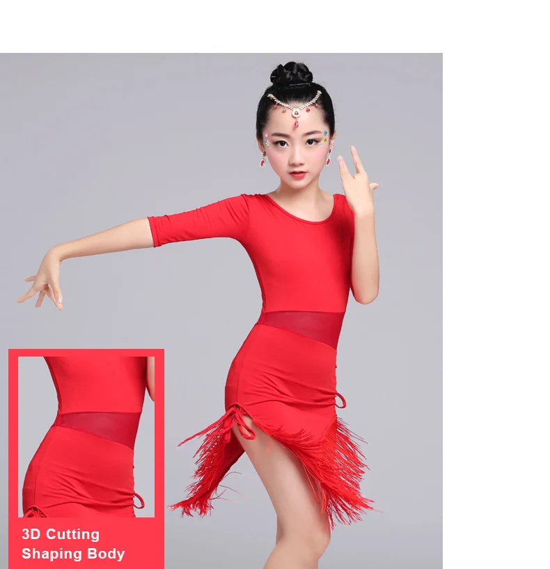 Новинка; Платье для латинских танцев с коротким рукавом; Цвет красный, черный; Детские танцевальные костюмы с бахромой для сальсы/Танго; Сетчатое платье для выступлений на талии