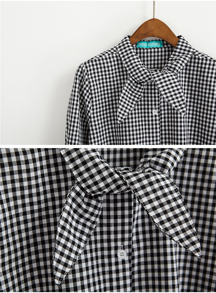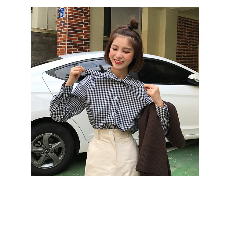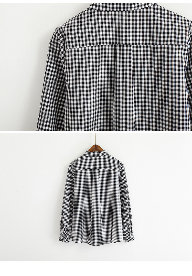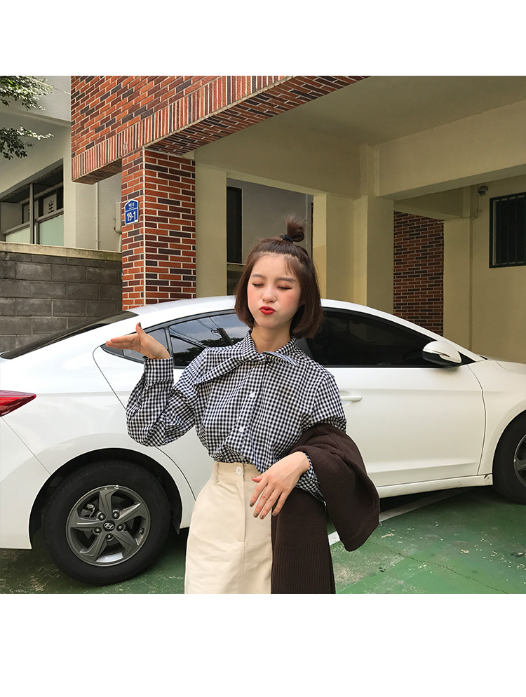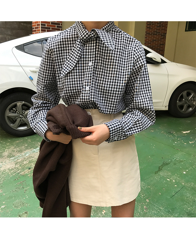 2017 маленькая Свободная рубашка с длинными рукавами и заячьими ушками в консервативном стиле, женские блузки в клетку