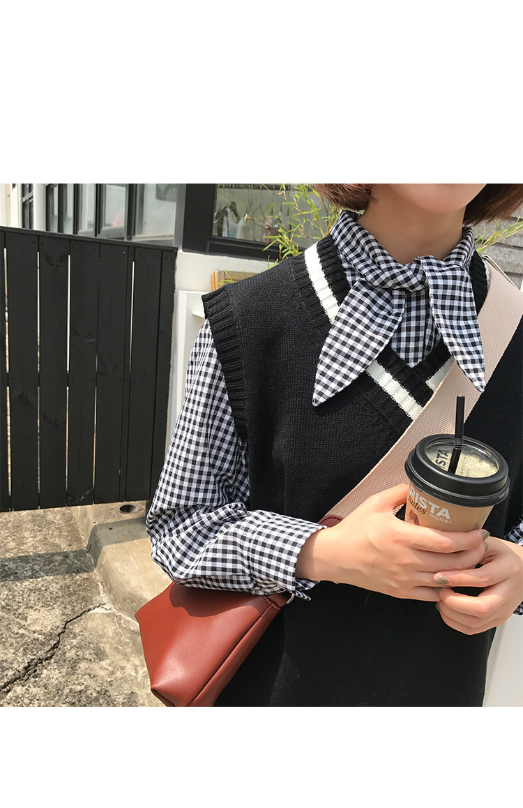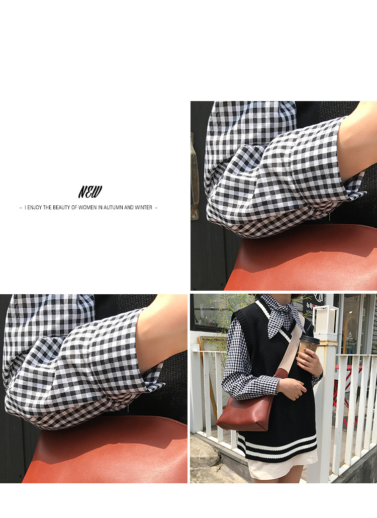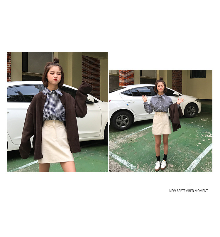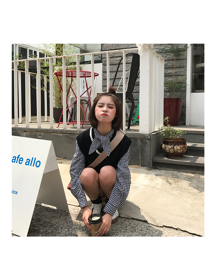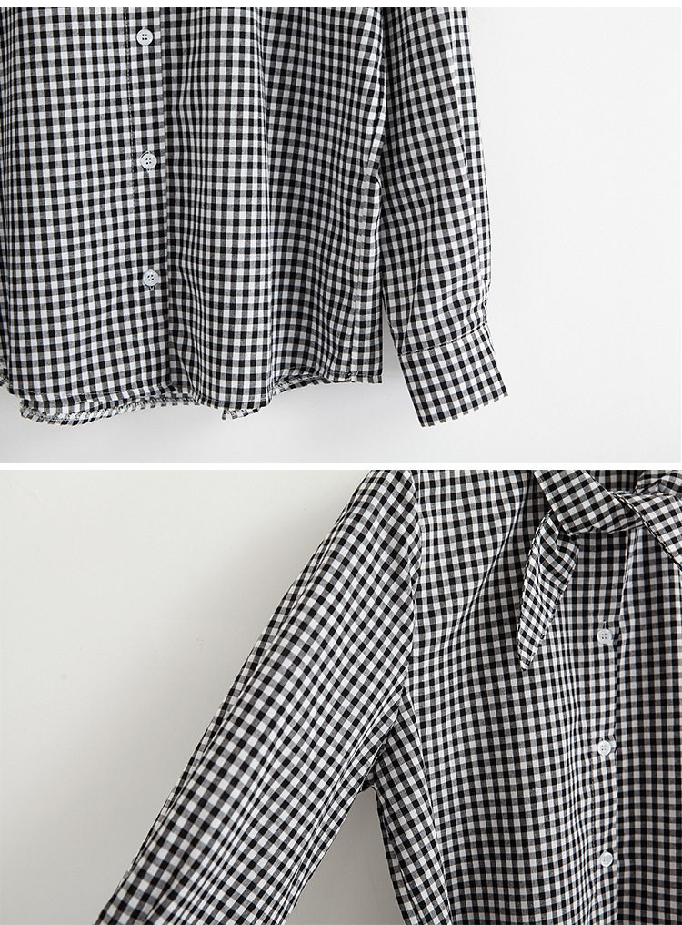 2017 маленькая Свободная рубашка с длинными рукавами и заячьими ушками в консервативном стиле, женские блузки в клетку