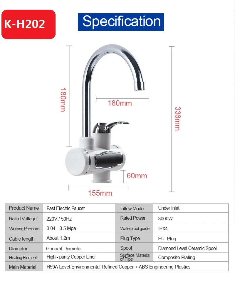 3200 Вт Электрический кран для водонагревателя из нержавеющей стали с