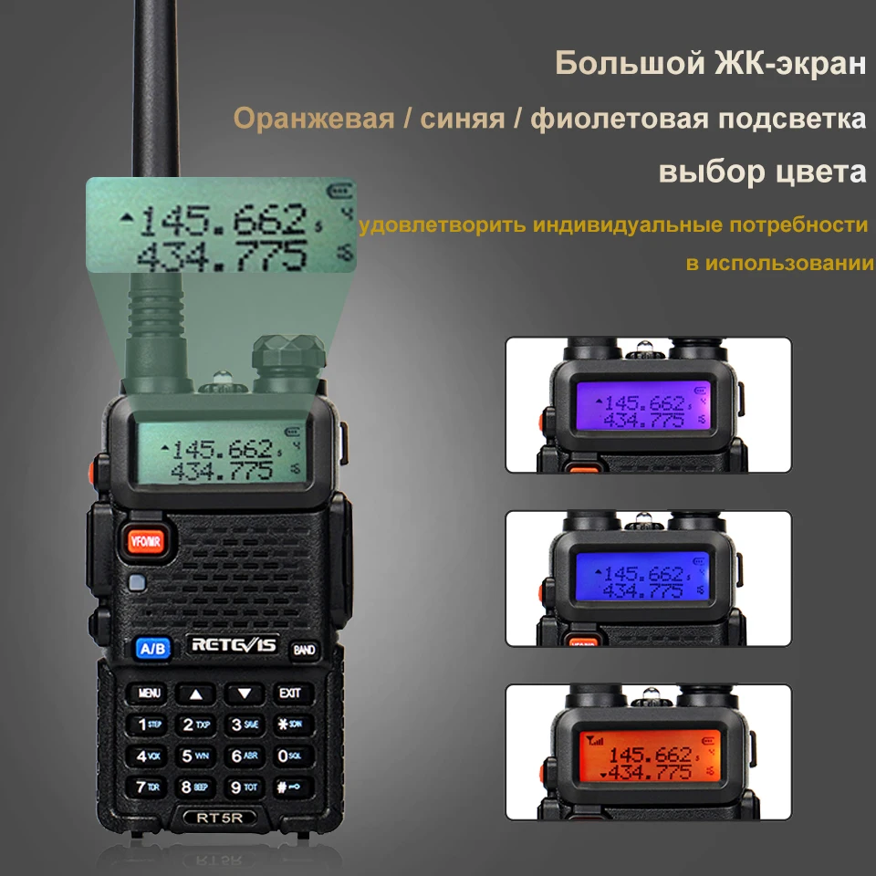 Внимание: Фактический доступный диапазон частот RT5R: двухдиапазонный УФ, УКВ: 136–174 МГц и УВЧ: 400–520 МГц , нет разницы между версией для США и версией для ЕС.