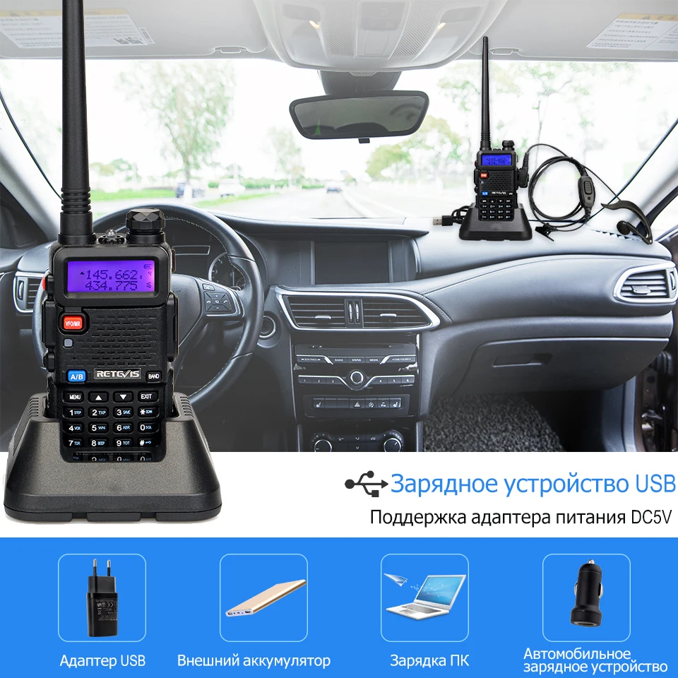RETEVIS RT5R удобный уоки-токи 5W VHF UHF USB Ham любительский двусторонней радиосвязи страйкбол охотничьи иди и болтай Walkie детская рация для Baofeng UV-5R