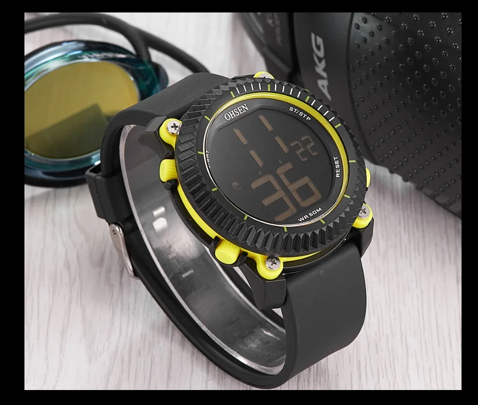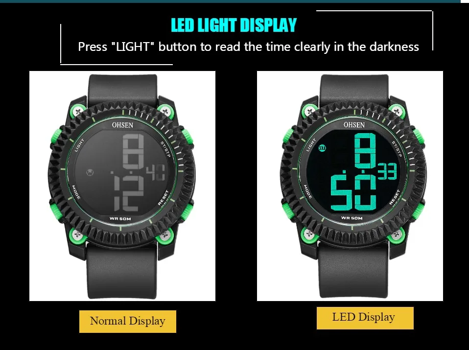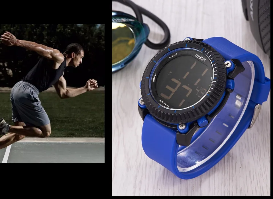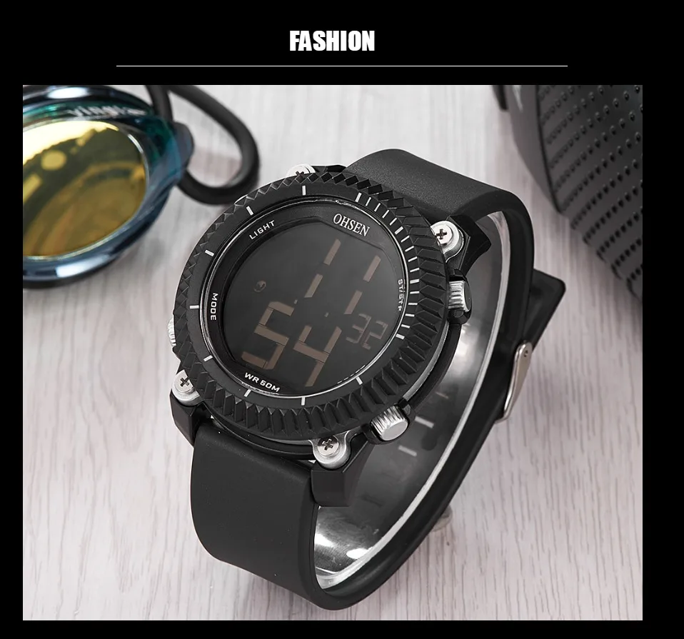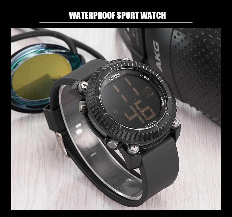 Japan Maxell кнопочный элемент, более длительное время использования Задняя крышка из нержавеющей стали с лазерным логотипом OHSEN Резиновый ремешок хорошего качества, более удобный Пряжка из нержавеющей стали