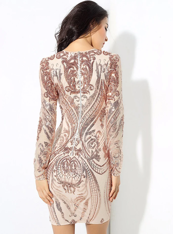 Женское вечернее мини платье LOVE & LEMONADE розовое золото облегающее с глубоким v