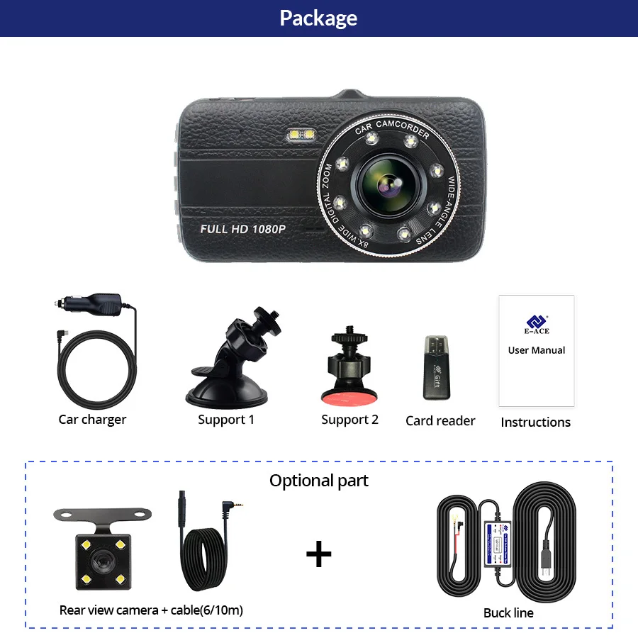 | Про видео | Наш Автомобильный видеорегистратор FHD 1080P видео рекордер, должен использовать высокое качество класса 10 TF карта, любое низкое качество/низкая скорость TF карта все не может поддерживать наши видеорегистраторы работают нормально, если вы не можете убедиться, что у вас есть хорошая TF карта, пожалуйста, купите нашу оригинальную TF карту вместе. |