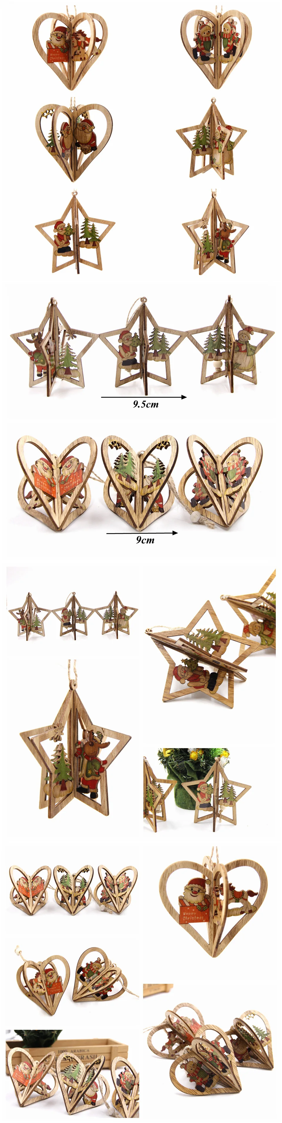 3 комплекта 3D креативные рождественские деревянные подвески, украшения DIY звезда и сердце, рождественские украшения для вечеринки, Рождественские елочные украшения, подарки для детей